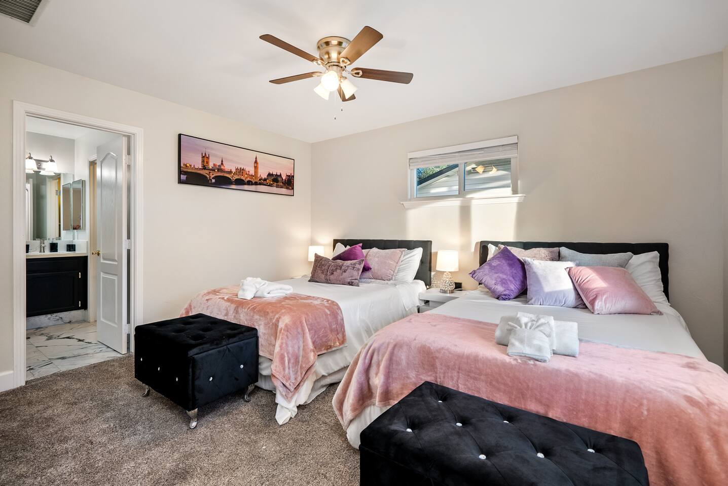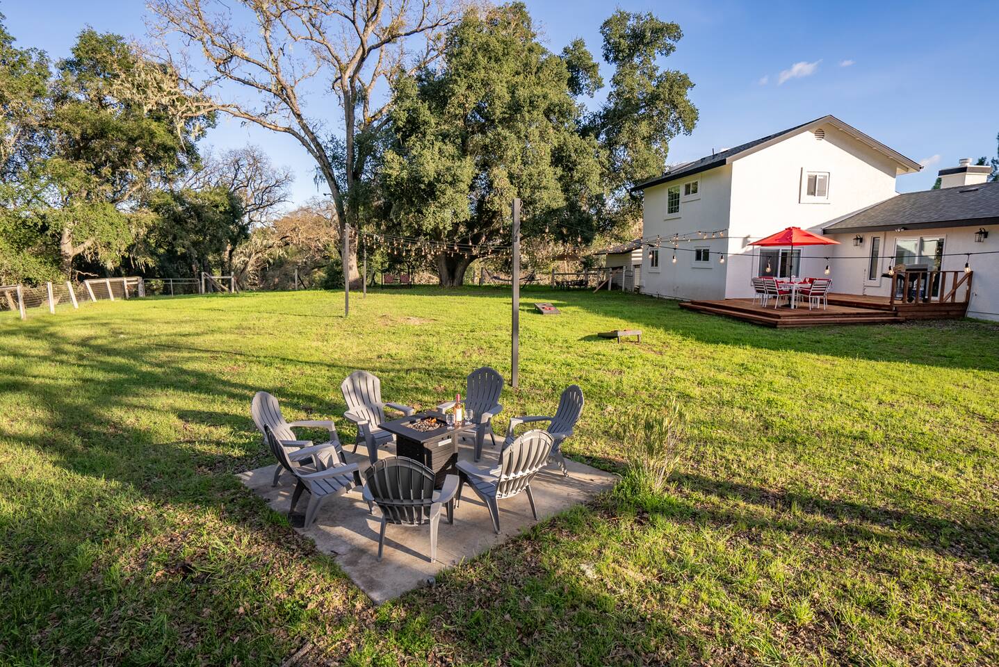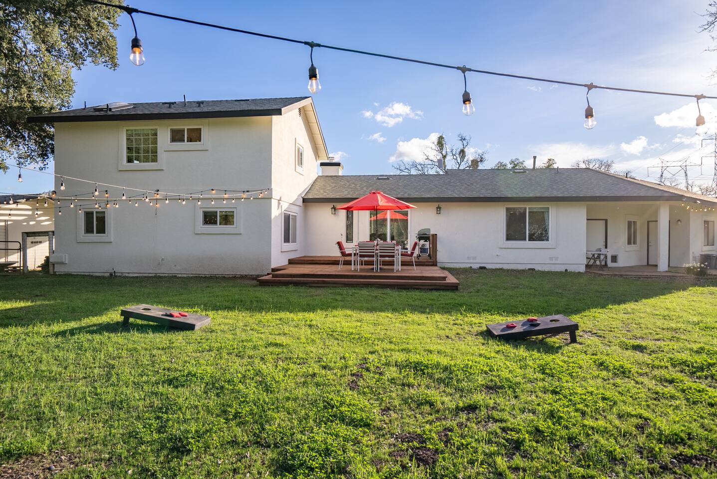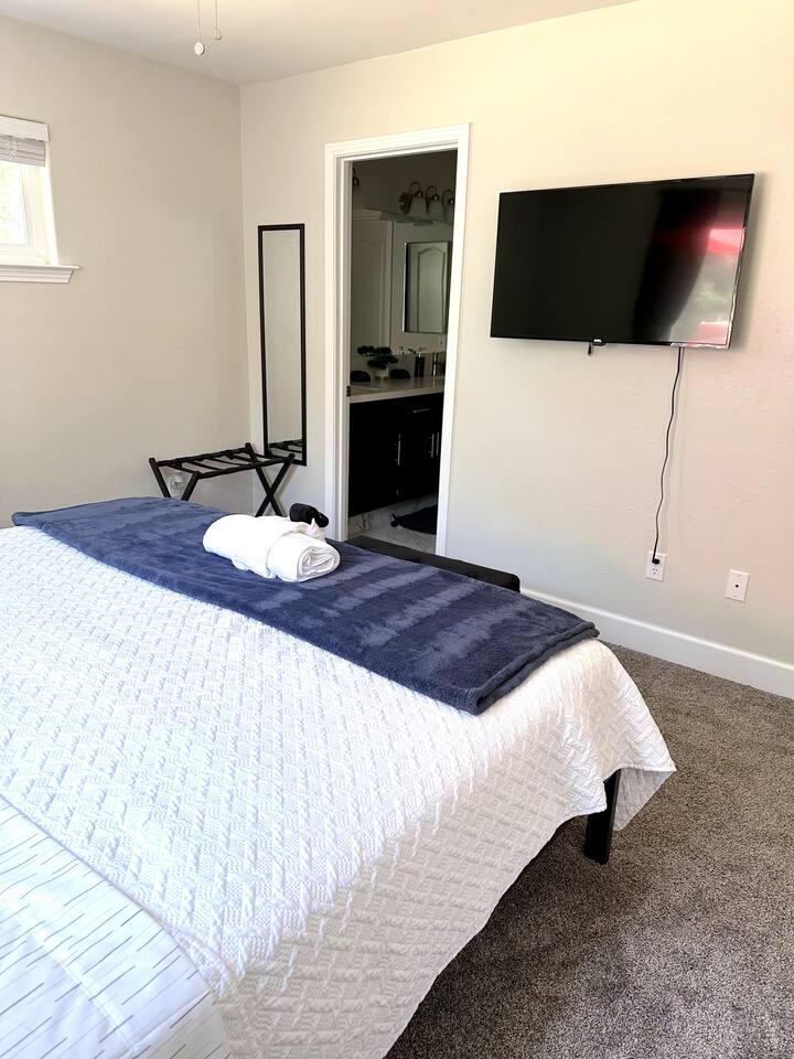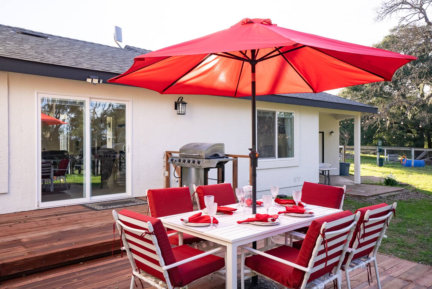 Deer Creek Vacation Retreat offers a spacious place for a group of friends or family to gather and reconnect. With 3 bedrooms, 2.5 bathrooms, and 6 beds the home sleeps up to 8 adults, 10 with kids comfortably with ample space to move around. AT A GLANCE: 6 beds: 2 King, 2 full, 1 futon, 1 rollaway bed Fire Pit Gas Grill Fully enclosed dog agility run Deck with dining seating for 6 Playground structure for kids to play Game room with 70" TV Pool table Basketball throw Poker table Foosball Arcade games Fully equipped chef's kitchen with new appliances Dining seating for 6 Counter bar seating for 4 Keyless entry with individual codes Fast Wi-Fi- limited to 350 GB per month. Hair Dryers Full length mirrors in every room Shampoo, conditioner & bodywash are provided. Baby friendly: Highchair, pack n play, safety gates, walker LOCATION DETAILS Directly off the 101 freeway (Complete quiet inside the house, some freeway noise can be heard while in the peaceful backyard) 2 min. to nearest grocery, fast food & gas station 5 min. To downtown Templeton or downtown Atascadero 15-20 min. to downtown Paso Robles 25 min. To San Luis Obispo, Cambria or Morro Bay beaches 45 min. to Hearst Castle The location is amazing, feeling like you are remote, yet just minutes away from wineries, breweries, beaches, Charles Paddock Zoo, grocery stores, and shopping centers For all of the details, read on! THE PROPERTY You will first drive up to the private drive that goes across the creek down a long driveway that leads to the 4.2-acre property. The home is far away from other homes and the backyard is totally private and filled with the sounds of nature. This house offers an on-site fully enclosed dog agility park where your pet can play, exercise, have fun, and burn off some energy. We have cozy accommodations at his property for both guests and their pets. The backyard boasts plenty of space to play and roam, tell stories around the fire pit, swing in the tree swings or hammock while watching the kids play on the playground. You can enjoy a late night bon fire or sit under the stars and take it all in. Guest can access the BBQ grill for those summer months (propane will be provided). Little ones can have fun on the children's swing and on the hammock located under the trees. THE HOME Purchased in 2022 and fully remodeled, you will enjoy modern design and brand-new kitchen and bathrooms with all new appliances. The open and airy kitchen is well stocked with all the essentials you will need to prepare everything from a simple home cooked meal to a large luxurious feast. You will have access to many kitchen appliances such as an air fryer, both a traditional coffee maker as well as a Keurig, blender and food processor in addition to pots, pans, baking sheets and all of the necessary cooking utensils, silverware, and dishes, to help make your stay more comfortable. The family room has a 55" smart TV for your viewing pleasures, mounted above the eye-catching electric fireplace for those cold winter nights. The washroom has a full washer and dryer for your convenience. We provide laundry soap and dryer sheets for your convenience. LIVING SPACES The main living room has an electric fireplace and large TV just adjacent to the dining room and kitchen, perfect for gathering & entertaining. There is a 3-car converted garage with games & plenty of space to hang out and play. ROOMS Room #1 The master bedroom (located upstairs) has a king size bed, a sofa bed, and a floor mattress. It has a large smart TV, reading nook, and a spacious full bathroom with a separate shower and a deep luxurious soaking tub. Enjoy your beverage of choice, or simply soak the beautiful scenery on the private balcony that wraps alongside the home. Room #2 & #3 Located on the main floor you will find bedrooms #2 with two double beds. Bedroom #3 has a King bed and a blow-up mattress. This bedroom also has a 55" Roku TV. Both bedrooms have a conjoined Jack and Jill bathroom with a separate vanity area with 2 sinks. In room #2 you will find a rollaway twin bed.