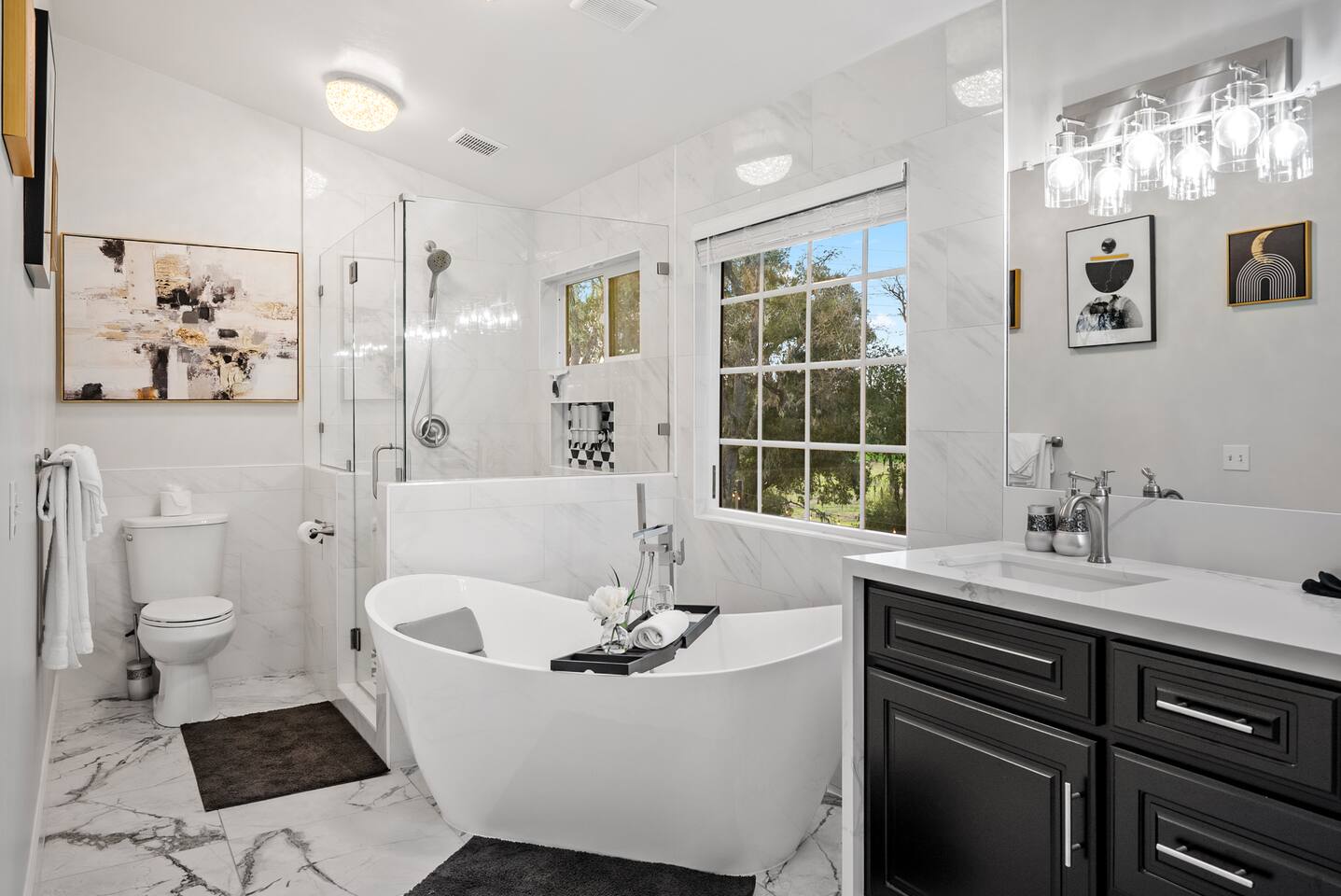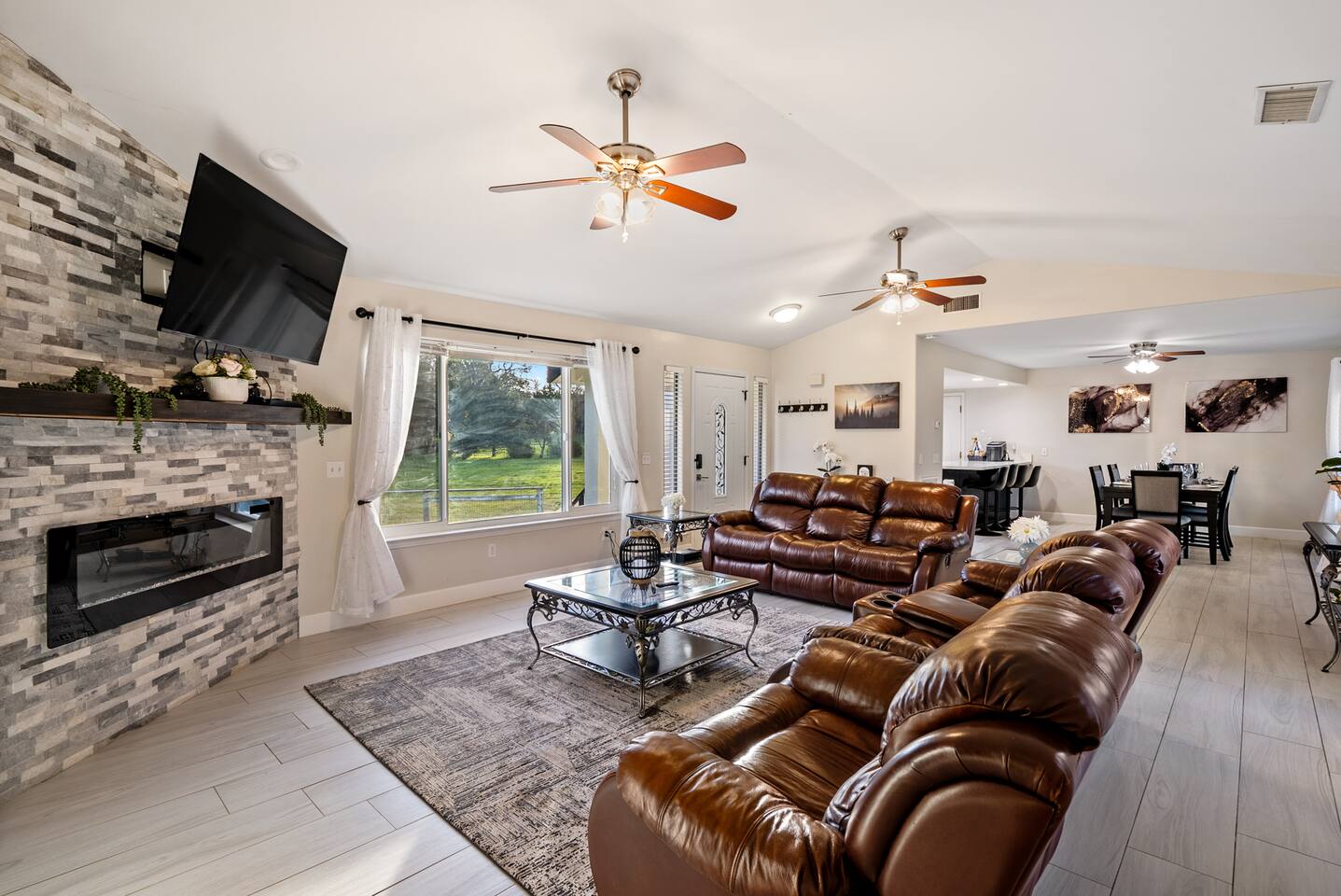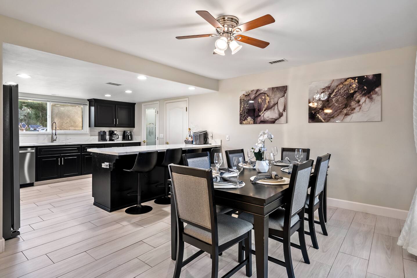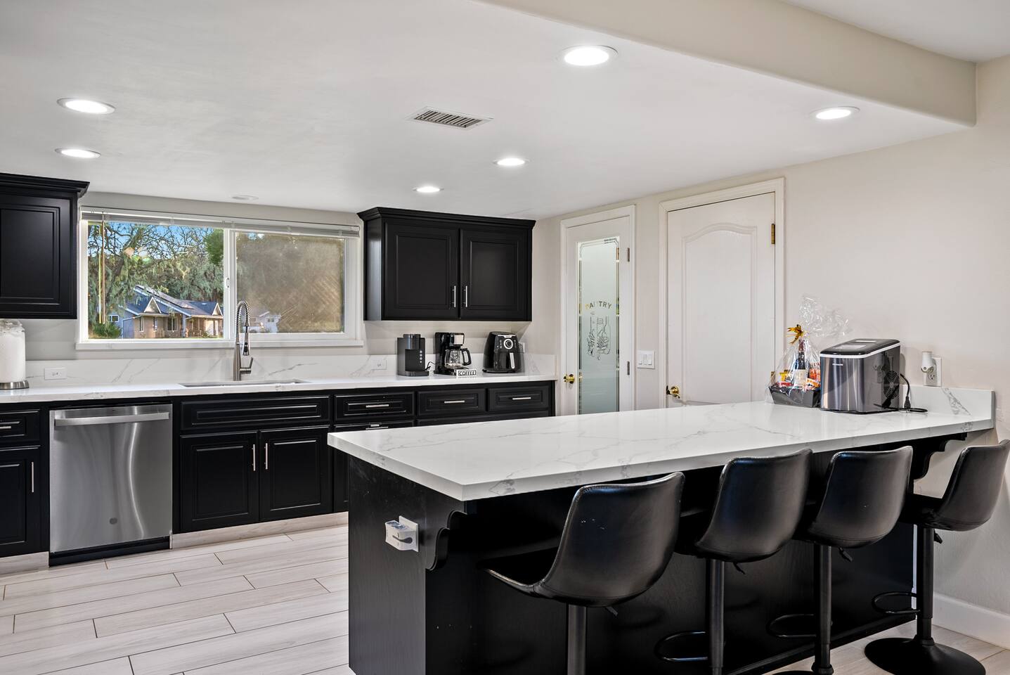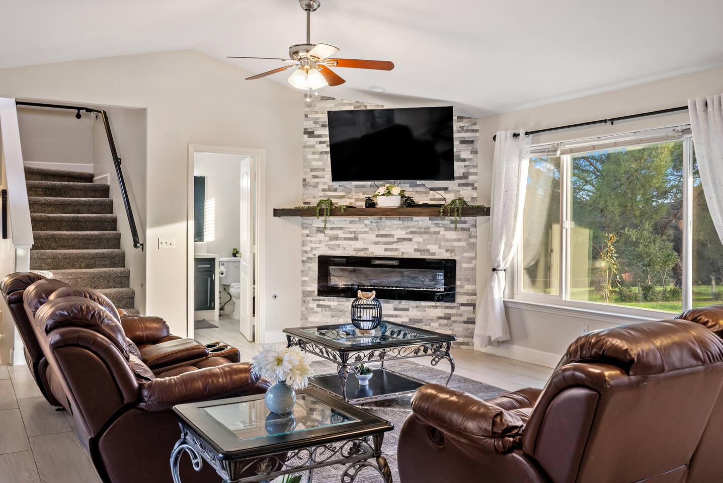Deer Creek Vacation Retreat offers a spacious place for a group of friends or family to gather and reconnect. With 3 bedrooms, 2.5 bathrooms, and 6 beds the home sleeps up to 8 adults, 10 with kids comfortably with ample space to move around. AT A GLANCE: 6 beds: 2 King, 2 full, 1 futon, 1 rollaway bed Fire Pit Gas Grill Fully enclosed dog agility run Deck with dining seating for 6 Playground structure for kids to play Game room with 70" TV Pool table Basketball throw Poker table Foosball Arcade games Fully equipped chef's kitchen with new appliances Dining seating for 6 Counter bar seating for 4 Keyless entry with individual codes Fast Wi-Fi- limited to 350 GB per month. Hair Dryers Full length mirrors in every room Shampoo, conditioner & bodywash are provided. Baby friendly: Highchair, pack n play, safety gates, walker LOCATION DETAILS Directly off the 101 freeway (Complete quiet inside the house, some freeway noise can be heard while in the peaceful backyard) 2 min. to nearest grocery, fast food & gas station 5 min. To downtown Templeton or downtown Atascadero 15-20 min. to downtown Paso Robles 25 min. To San Luis Obispo, Cambria or Morro Bay beaches 45 min. to Hearst Castle The location is amazing, feeling like you are remote, yet just minutes away from wineries, breweries, beaches, Charles Paddock Zoo, grocery stores, and shopping centers For all of the details, read on! THE PROPERTY You will first drive up to the private drive that goes across the creek down a long driveway that leads to the 4.2-acre property. The home is far away from other homes and the backyard is totally private and filled with the sounds of nature. This house offers an on-site fully enclosed dog agility park where your pet can play, exercise, have fun, and burn off some energy. We have cozy accommodations at his property for both guests and their pets. The backyard boasts plenty of space to play and roam, tell stories around the fire pit, swing in the tree swings or hammock while watching the kids play on the playground. You can enjoy a late night bon fire or sit under the stars and take it all in. Guest can access the BBQ grill for those summer months (propane will be provided). Little ones can have fun on the children's swing and on the hammock located under the trees. THE HOME Purchased in 2022 and fully remodeled, you will enjoy modern design and brand-new kitchen and bathrooms with all new appliances. The open and airy kitchen is well stocked with all the essentials you will need to prepare everything from a simple home cooked meal to a large luxurious feast. You will have access to many kitchen appliances such as an air fryer, both a traditional coffee maker as well as a Keurig, blender and food processor in addition to pots, pans, baking sheets and all of the necessary cooking utensils, silverware, and dishes, to help make your stay more comfortable. The family room has a 55" smart TV for your viewing pleasures, mounted above the eye-catching electric fireplace for those cold winter nights. The washroom has a full washer and dryer for your convenience. We provide laundry soap and dryer sheets for your convenience. LIVING SPACES The main living room has an electric fireplace and large TV just adjacent to the dining room and kitchen, perfect for gathering & entertaining. There is a 3-car converted garage with games & plenty of space to hang out and play. ROOMS Room #1 The master bedroom (located upstairs) has a king size bed, a sofa bed, and a floor mattress. It has a large smart TV, reading nook, and a spacious full bathroom with a separate shower and a deep luxurious soaking tub. Enjoy your beverage of choice, or simply soak the beautiful scenery on the private balcony that wraps alongside the home. Room #2 & #3 Located on the main floor you will find bedrooms #2 with two double beds. Bedroom #3 has a King bed and a blow-up mattress. This bedroom also has a 55" Roku TV. Both bedrooms have a conjoined Jack and Jill bathroom with a separate vanity area with 2 sinks. In room #2 you will find a rollaway twin bed.